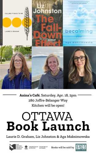 Join Laurie D. Graham, Liz Johnston and Aga Maksimowska at Anina's Café in Ottawa as they launch their newest books.