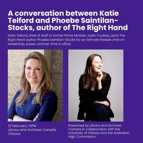 Presented by Library and Archives Canada in collaboration with the University of Ottawa and the Australian High Commission, this event will feature an in-depth discussion between Saintilan-Stocks and Telford on power behind the scenes, leadership at the highest level, and what it truly means to operate within the inner circle of government.